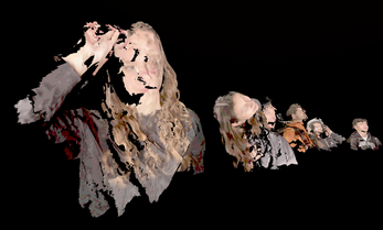 This virtual installation features 3D face scans captured using FaceID technology. These scans are intentionally manipulated, distorting the individuals’ features into glitch-like forms, challenging perceptions of identity and digital representation.
